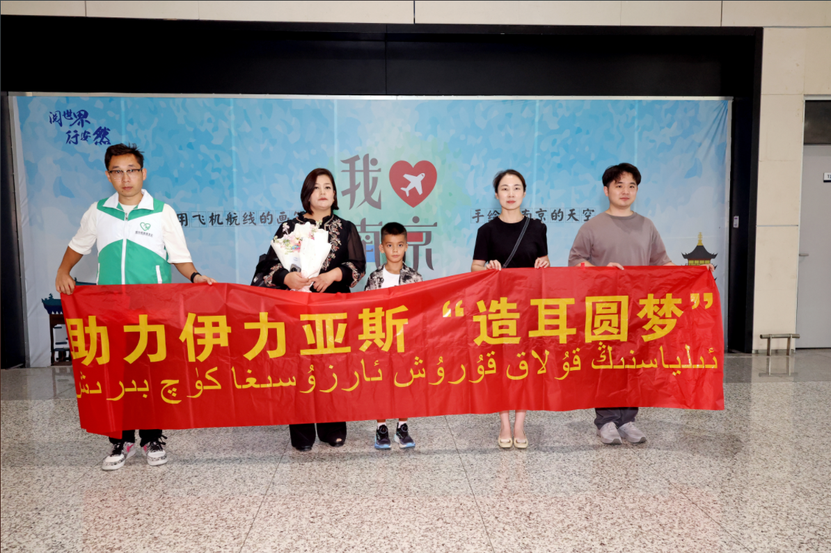 伊力亚斯数着日子,终于盼来了这一天。7月24日下午,南京禄口国际机场的到达口,一条“助力伊力亚斯‘造耳圆梦’”的横幅格外醒目。中大医院烧伤整形科张倩婷护士长等医护代表手捧鲜花,早早等候着这对跨越四千公里而来的母子。