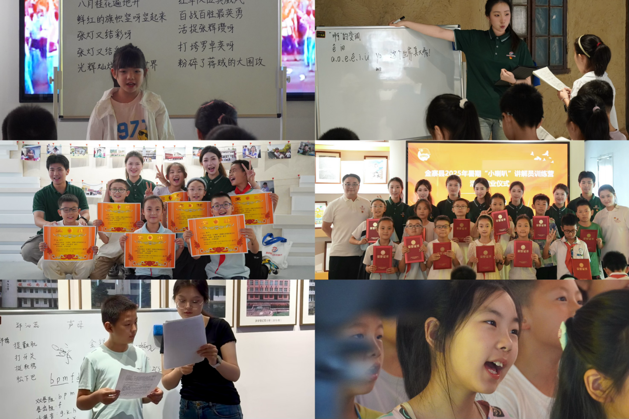 金寨县是我国著名的革命老区,每一寸土地都镌刻着红色记忆。“皖美同音”团队的推普第二站是为金寨团县委组织的少儿讲解员进行为期7天的培训。38名“小小红色讲解员”被分为5个定制小班,开启了声音的蜕变之旅。针对少儿讲解员年龄偏小、普通话基础参差不齐的特点,队员们精心设计了课程体系。在普通话基础发音环节,队员们从声母、韵母、声调等最基础的知识入手,通过趣味绕口令、发音模仿秀等形式,让孩子们在轻松愉快的氛围中纠正发音误区。团队成员们凭借扎实的专业功底,耐心地为每一位孩子示范口型,手把手地指导他们掌握正确的发音方法。