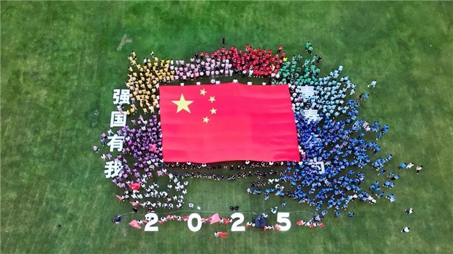 伴随着《歌唱祖国》的旋律在南燕园上空奏响,全体师生齐声高唱,嘹亮的歌声交织在一起,如汹涌澎湃的浪潮,瞬间响彻南燕园的天空。与此同时,一面巨大的五星红旗在众人期盼的目光中,缓缓出现在操场中央。鲜艳的红色在夜空中格外醒目,全体师生停下脚步,共同迎接这面巨幅国旗。师生们自发地围拢到国旗周围,挥舞着手中的闪光灯,脸上洋溢着自豪和喜悦。这一刻,北大人用实际行动践行着“完全人格,首在体育”的精神,将个人的青春梦想与祖国的繁荣富强紧密联系在一起,抒发了对祖国的深深热爱和美好祝福。