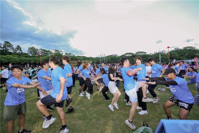 在人文学院通识教育中心覃峨老师和马思晨老师的带领下,全体师生进行了充分的跑前热身。随着欢快的音乐节奏,师生们认真完成每一个热身动作,拉伸肌肉、活动关节,为即将开始的跑步做好准备。现场气氛热烈而融洽。