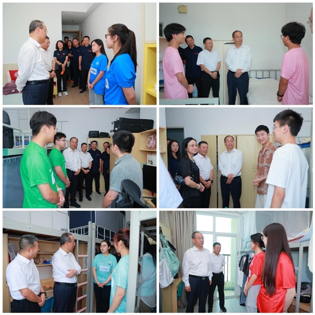 活动开始前,张锦院长一行前往学生宿舍,看望刚刚入学的2025级新生。张锦实地查看了学生公寓的修缮和配置情况,认真听取新生们对学习生活的意见和建议。他鼓励新生们要珍惜校园时光,努力学习,在南燕园度过充实而有意义的校园生活。