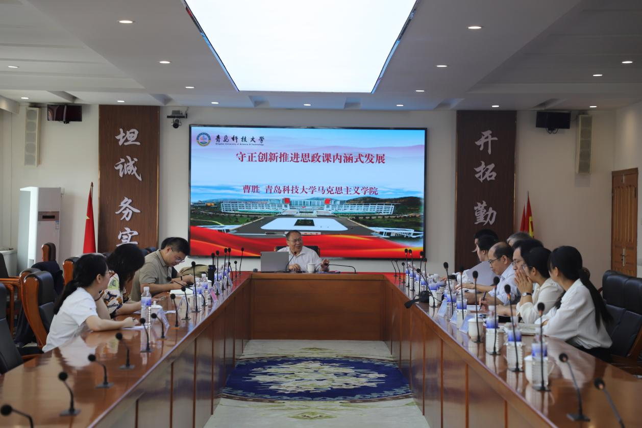 签约结束,青岛科技大学马克思主义学院院长曹胜作题为《守正创新推进思政课内涵式发展》专题报告,以理论和实践相结合方式,阐释了课程创新、教学方法改革等内容,为破解思政课发展难题、提升教学质量提供了宝贵思路。双方骨干教师还就思政课教育教学改革创新做了深入交流。