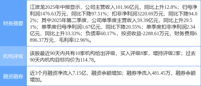 2025年8月26日,天风证券研究员潘暕,缪欣君,李泓依发布了对江波龙的研报《25Q2营收创历史新高,企业级+主控自研驱动高成长》,该研报对江波龙给出“买入”评级,认为其目标价为115.2元,现价已超分析师预估,涨幅达到28.78%。研报中预计2025/2026/2027年实现归母净利润4.82/16.09/20.76亿元,维持公司“买入”评级。证券之星数据中心根据近三年发布的研报数据计算,该研报作者对此股的盈利预测准确度为30.37%。