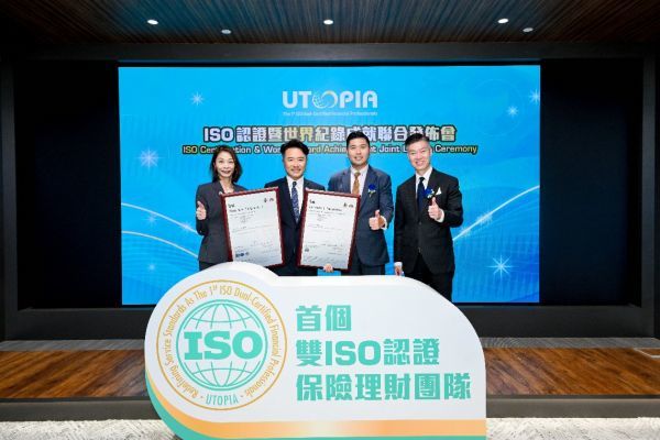 AIA财务策划团队UTOPIA于2025年7月22日举行「ISO双认证暨世界纪录成就联合发布会」,成为香港首个同时荣获ISO 9001质量管理系统及ISO 10002客户满意度管理系统双认证的财务策划团队,以及获世界纪录协会正式认证为「世界最高百万圆桌会会员比例团队」,为香港保险专业服务树立全新行业标竿。