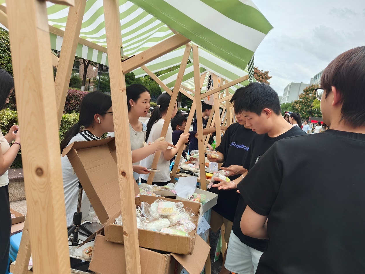爱心义卖专区则汇聚了众多物品,从书籍、文具到手工艺品,种类丰富。义卖所得将全部用于社区公益项目。负责义卖区的学生介绍:“我们希望通过这种方式,让新生们在参与创意市集的同时,也能感受到公益的力量,培养他们的社会责任感。”现场,不少新生在选购创意产品的同时,也积极参与到义卖活动中,奉献自己的一份爱心。