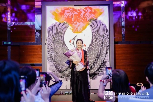 紫舟书法的魅力源于其天马行空的想象力与强烈的表现力。她运笔速度与力度多变灵动,选用不同字体,并以纸张、金属、多媒体动画等多样载体呈现书法之美。即便是不谙书法的观众,亦能直观感受其作品的玄妙与张力。