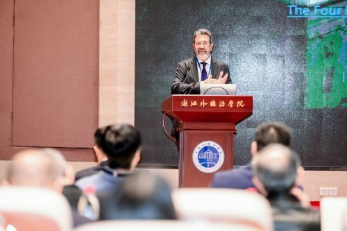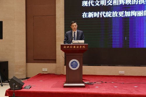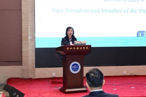 张环宙致欢迎辞。她指出,文明交流互鉴的重要性日益凸显,全球文旅产业正加速迈向深度融合与创新发展的新阶段,以运河等地理脉络为纽带的文化与旅游融合,正成为连接历史与未来、促进民心相通的重要力量。近年来,浙外依托大运河国际研究中心等高端智库,深耕文化遗产保护与文明交流互鉴,为浙江建设高水平文化强省和旅游强省贡献了浙外力量。本次研讨会以“地理纽带与文明交流互鉴:新型国际关系构建中的运河对话”为主题,既是对国家战略的积极响应,更是对运河文明时代价值的深度挖掘。她期待与会嘉宾围绕议题,分享“人民的运河”在民生福祉、文化传承中的实践经验,探索“游客的运河”在国际传播、产业升级中的创新路径,让千年运河成为连接中外文明的“流动桥梁”,为新型国际关系构建注入文化动能。