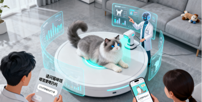 在智能硬件方面,宠智灵将识别算法嵌入可穿戴设备与家庭终端,实时监测体征、运动与睡眠。当系统检测到异常,如心率骤升或活动量下降时,会自动发出健康预警并关联问诊入口,实现从监测到干预的闭环管理。