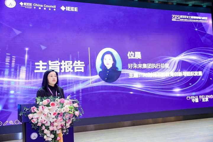 好未来集团执行总裁位晨女士带来了题为“AI时代下的教育创新与组织发展”的主旨报告。她分享了AI为公司管理和教育行业赋能带来的积极影响,并展望“爱和科技助力终身成长”的美好愿景。