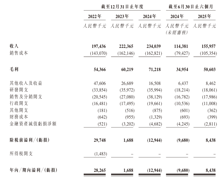 公司于2022年-2024年分别录得收入1.97亿元、2.22亿元及2.34亿元,今年上半年收入同比增长36.35%至1.56亿元。