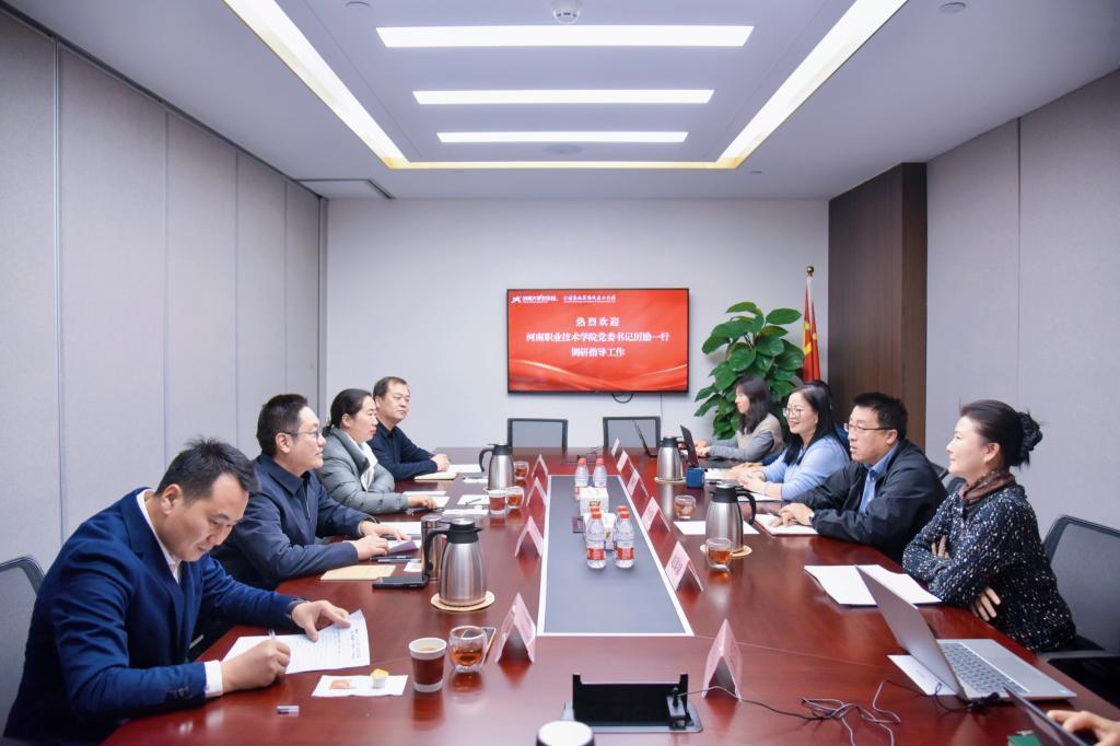 11月18日,河南职业技术学院党委书记厉励带队赴教育部中国大学生在线、全国高校思想政治工作网进行工作交流,就深化网络育人和智慧思政建设等工作进行深入交流。中教华影副总经理、中国大学生在线、全国高校思政网常务副主任张治国,中教华影副总经理赵黎娜,中国大学生在线、全国高校思政网副主任、高校心指委秘书处负责人郑骊君等相关业务负责人参加座谈交流。校党委副书记、工会主席田华,党委宣传部、党委学生工作部负责同志一同参加调研。