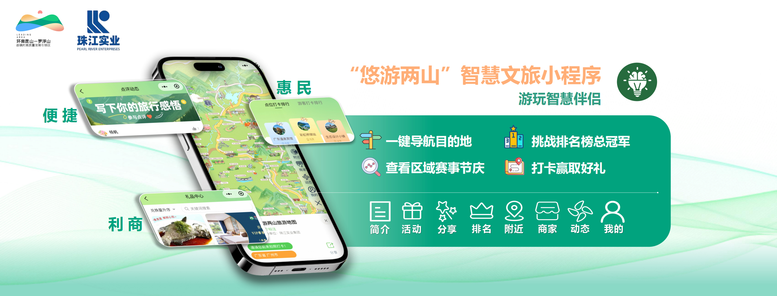 2025年12月19日,环南昆山-罗浮山县镇村高质量发展引领区(广州)总体规划发布暨文体活动推广和重点项目签约活动在广州市城市规划展览中心成功举办。省、市“百千万工程”指挥办,广州市政府相关领导,市规划和自然资源局、市国资委、市体育局、市林业园林局等相关负责人出席了本次活动。活动中,珠江实业集团正式对外发布“悠游两山”文旅IP,以“智慧引导+互动体验+商业联动”为核心理念,系统构建“两山行迹”打卡集、“悠游两山”智慧文旅小程序、“悠旅联盟合伙人”计划三大板块,助造引领区打造长期运营数字底座,构建线上线下深度融合、游客与商家互利共赢的文旅新范式。