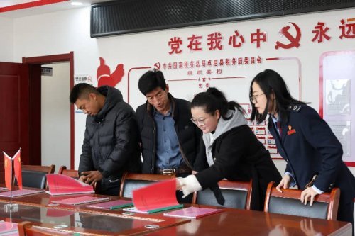 在税务局相关负责人的陪同下,柯别村代表一行参观了党建工作室,认真翻阅党建工作台账,详细了解税务局在党建品牌创建、党员教育管理、党建与业务融合等方面的经验做法。交流座谈中,双方围绕基层党组织建设、特色产业发展、民生实事办理等内容展开深入探讨。柯别村党支部书记表示,税务部门的爱心捐赠解了群众的燃眉之急,此次观摩学习更让村“两委”开阔了党建工作思路,希望以此次交流为契机,深化税村共建合作,推动村集体经济发展与乡村振兴工作再上新台阶。