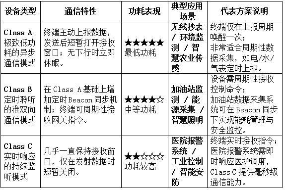 LoRaWAN三种设备类型典型应用对比表