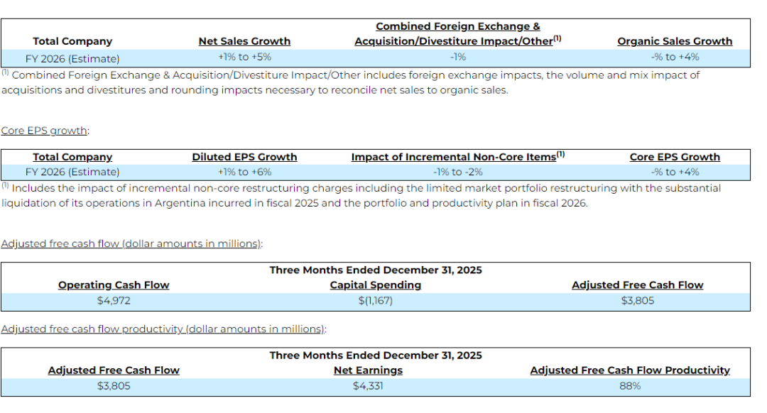 △图源:截自宝洁公司2026财年第二季度财报
