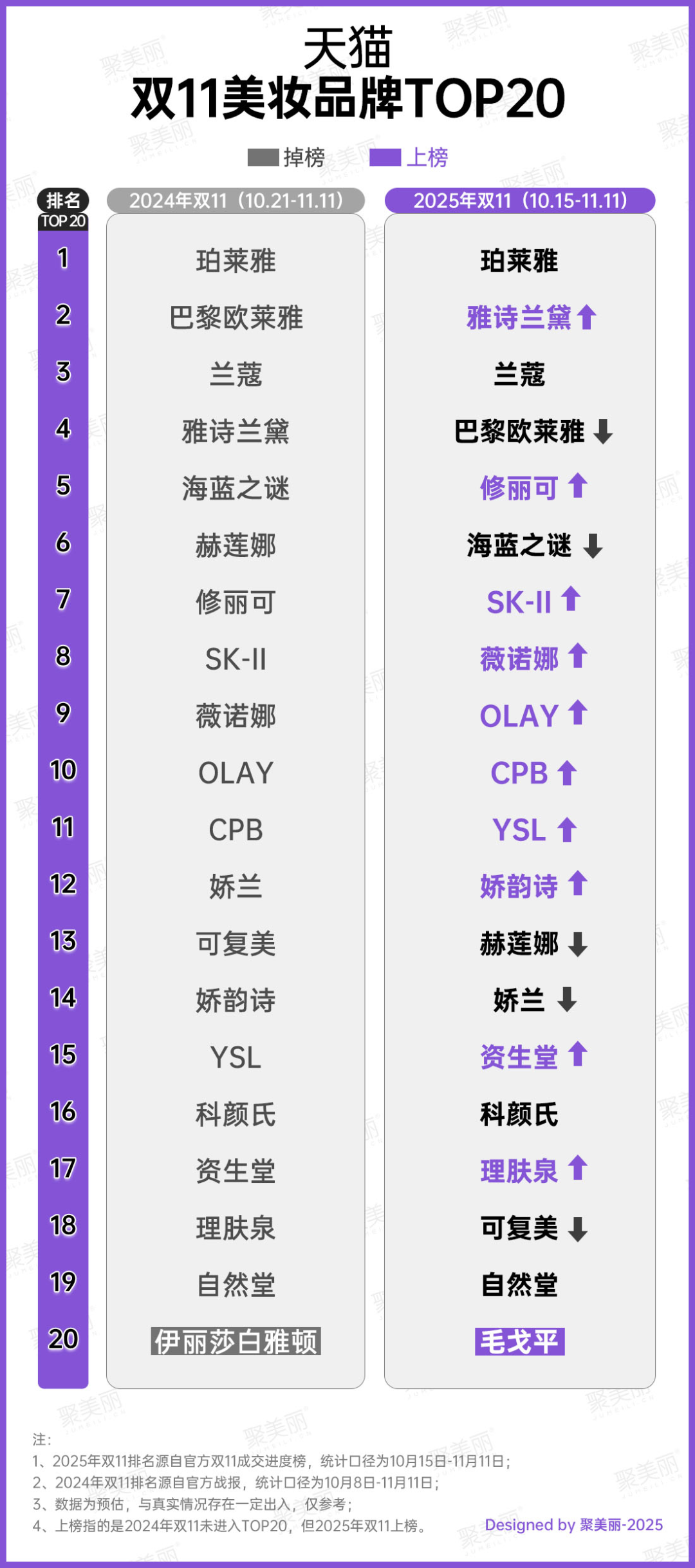 从各大榜单和数据也能窥见一二。在2025年双11天猫美妆品牌TOP20中,宝洁旗下高端护肤品牌SK-II排名由第8名上升至第7名,而另一大核心高端品牌OLAY也从第10名上升至第9名。