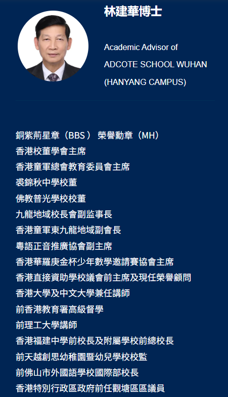 • 香港专家领航:特邀香港校董学会主席、铜紫荆星章及荣誉勋章得主林建华博士担任学术顾问。林博士深耕教育数十年,兼具香港教育署高级督学、港大及港中文兼任讲师等资历,提供一对一精准辅导,直击港校申请核心;