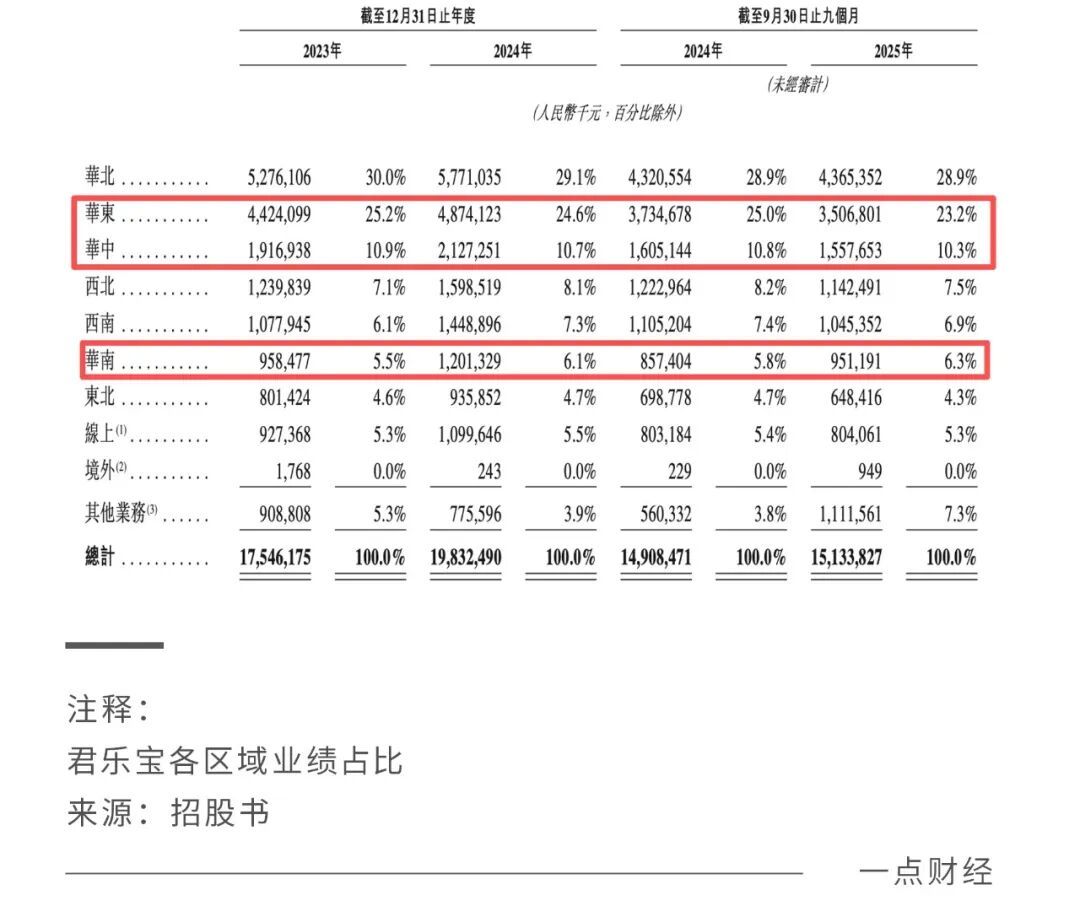 起家于石家庄,华北市场是君乐宝的大本营,2024年贡献了29.1%的营收。对它来说,华北市场几近饱和,必须寻找新的市场机会。
