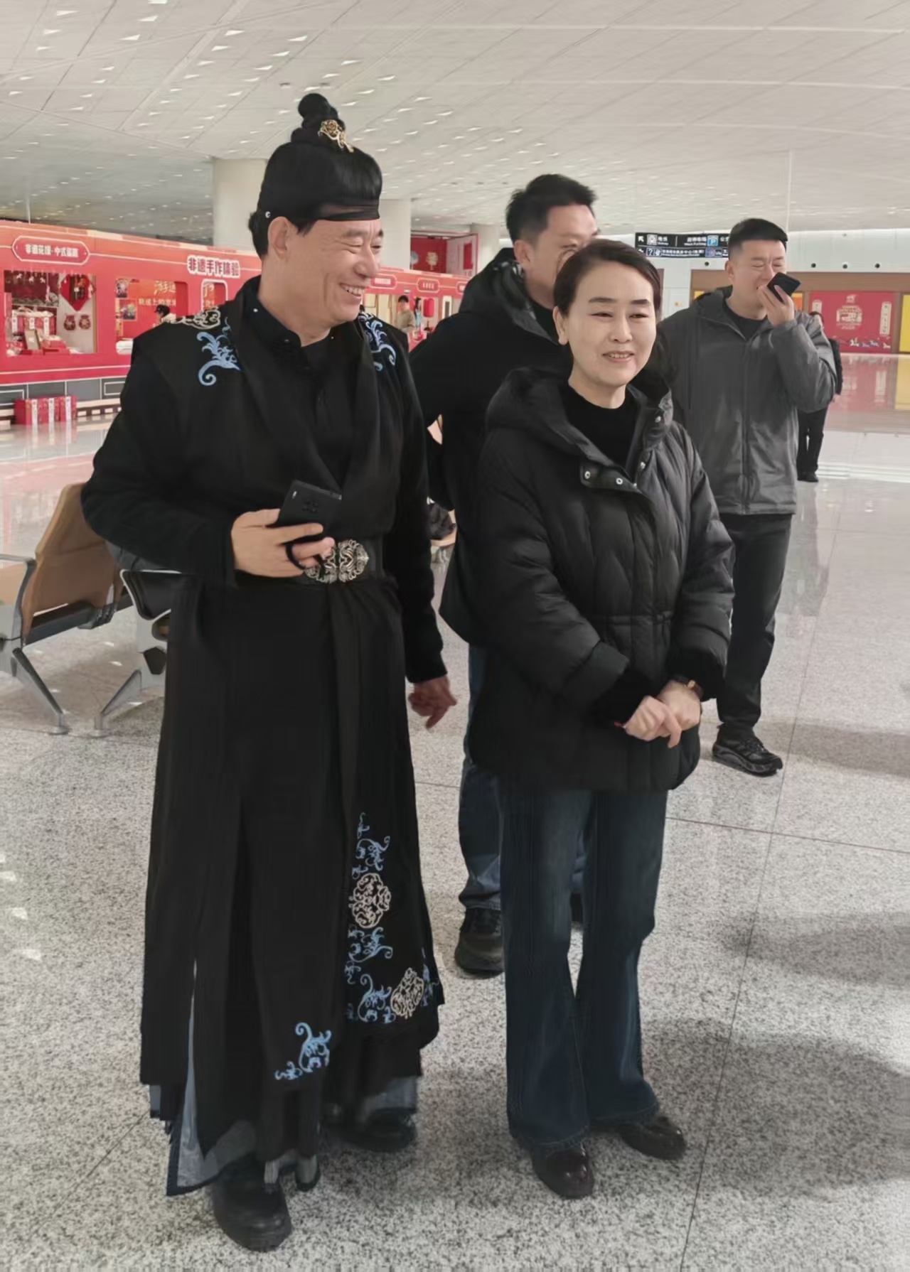 2月10日,腊月廿三,小年。上午九点,北京通州站非遗集市刚刚苏醒。这座由老火车站改造而来的文化地标,保留了动车的流线造型与现代工业风,却在年关之际挂满了红灯笼与剪纸窗花,传统与时尚在此处撞了个满怀。项目组成员与运河人家团队早早抵达现场,开始了一天的忙碌。从花馍产品的陈列、文创冰箱贴的摆放,到汉服衣架的固定、家风主题展板的调试,每一位成员都在争分夺秒。当第一缕阳光透过动车顶棚洒进集市,展位已初具模样——“馍韵芳华”与“运河人家”的条幅高高悬挂,电视宣传片循环播放,红色易拉宝点缀其间,年味与文化底蕴相映生辉。