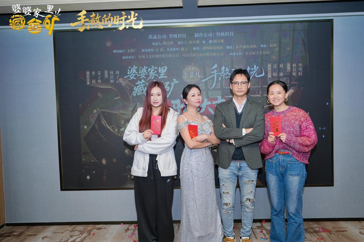 2026 年 3 月 28 日下午,微短剧《婆婆家里藏金矿》与《手熬的时光》开机仪式在广西桂林市维也纳酒店(七星万达店)隆重举行。本次活动由智帧科技主办,汇聚了剧集主创团队、协拍单位代表、合作机构及多家主流媒体代表,共同见证两部深耕桂林本土文化、创新 “微短剧 + 文旅” 融合模式的精品短剧正式启动拍摄。