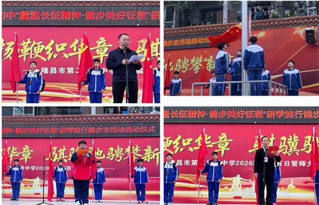 为弘扬长征精神,传承中华优秀传统文化,激励师生以强健体魄和坚定意志迎接新征程,3月27日,隆昌市第二初级中学在孔子广场隆重举行2026年春季学期“重温长征精神,健步美好征程”健步走活动启动仪式暨传统文化主题教育活动。全校师生齐聚一堂,在庄严与热烈的氛围中,共同开启了一场融合体育精神与文化传承的青春盛宴。