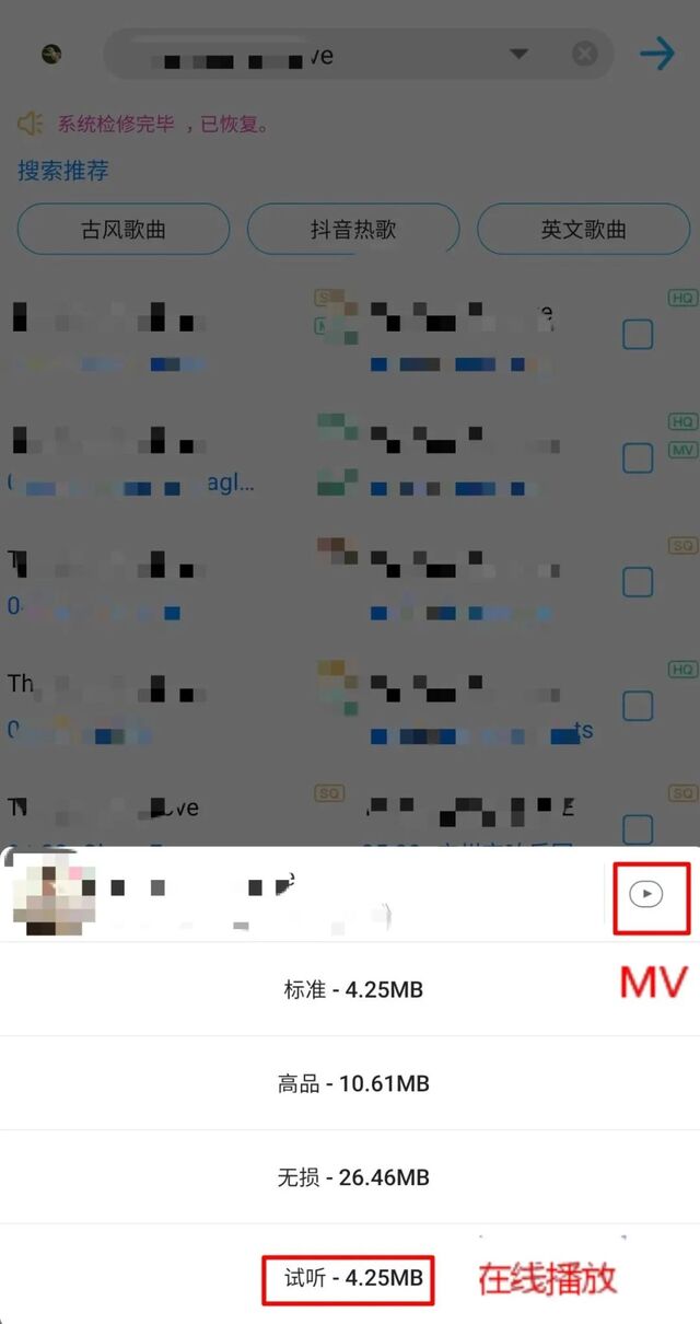 点击右侧播放图标则可以下载或播放不同画质的 MV。