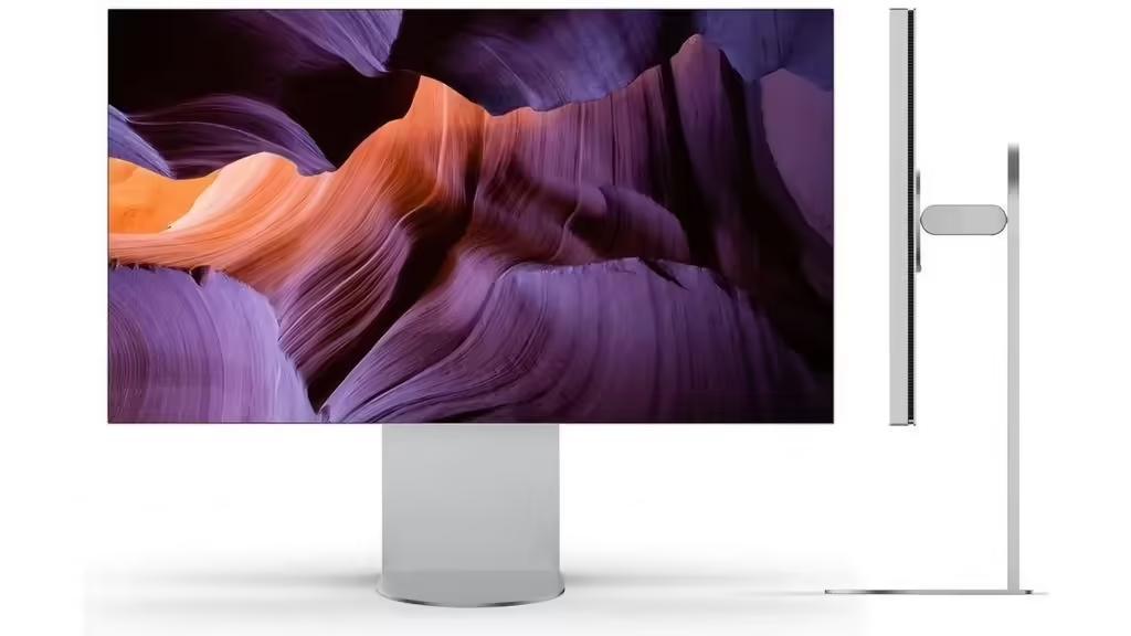 在外观方面,这款显示器借鉴了 Pro Display XDR 和 Studio Display 方案,具有薄边框、矩形板状机身和类似 Apple 的后支架。