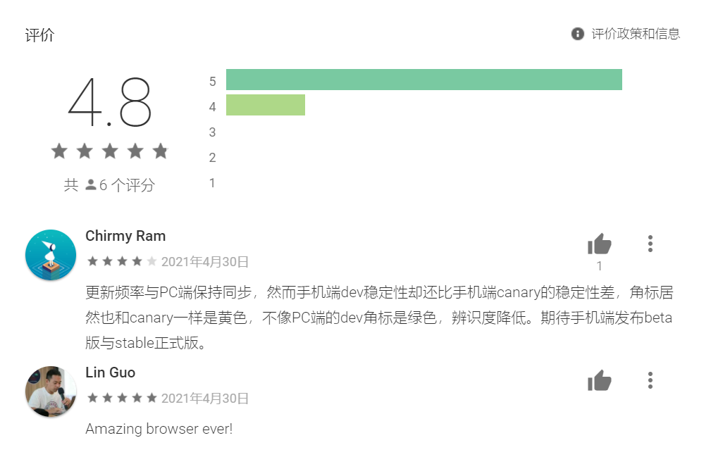 此前,微软在安卓平台推出了更新频率更快的 Canary 版,采用了最新的 Chromium 92 内核。目前该版本浏览器在 Play Store 评分为 4.0 分,但有用户表示浏览器没有屏蔽广告的功能。