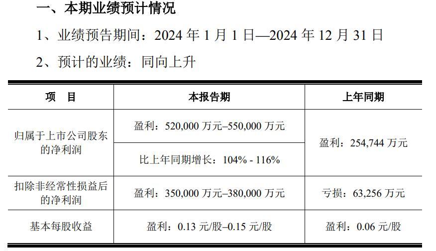 京东方预计,2024年归母净利润为52亿元-55亿元,同比增长104%-116%。