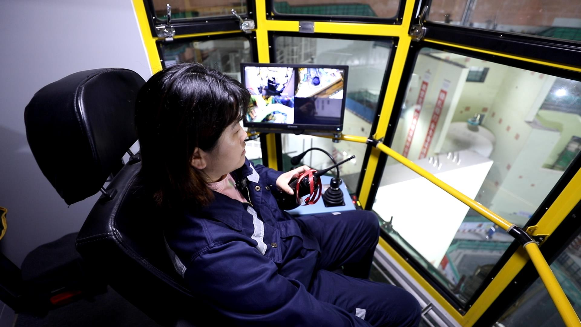 华龙一号里要安装的设备,小的有一两吨,大的能到两三百吨,这些都是靠厂房顶部的一台巨大的环形吊车来进行吊装。它位于反应堆厂房顶部约40米的高处。由于吊车位置太高,出入不便,往返到地面最少需要半个小时,环吊司机蔡凯旋为了提高工作效率,工作期间她不喝一口水,在这个不到2平方米的驾驶室里,一坐就是五六个小时。蔡凯旋告诉记者,在驾驶环吊的过程中最重要的是专注。在她看来,专注起来开环吊是一件非常有意思的事。