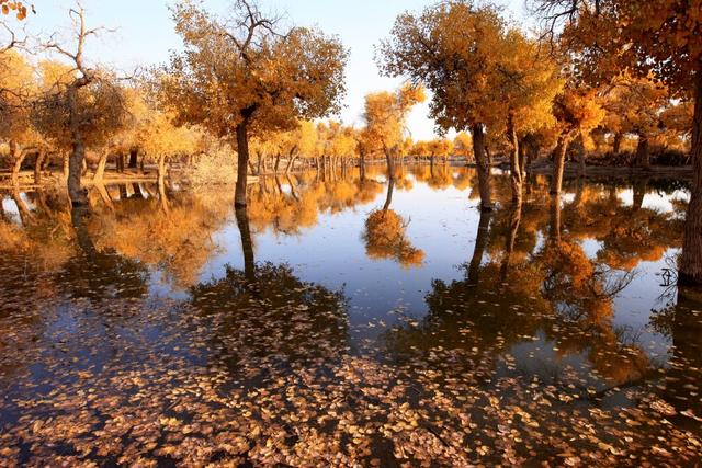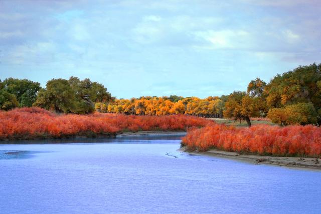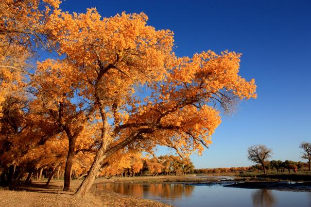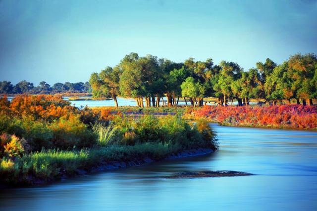 古代额济纳河孕育了胡杨林。额济纳河古称黑河、弱水。俗话说“弱水三千,只取一瓢”是指这里。