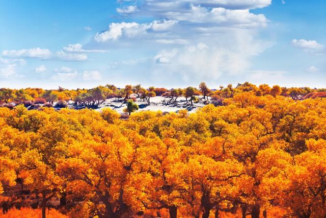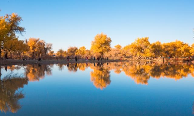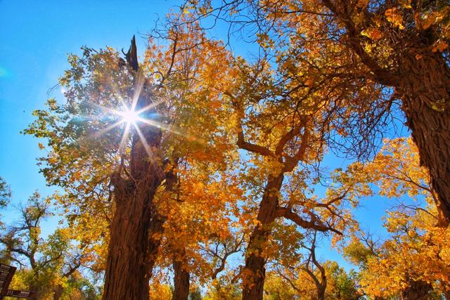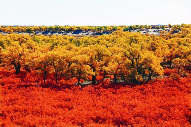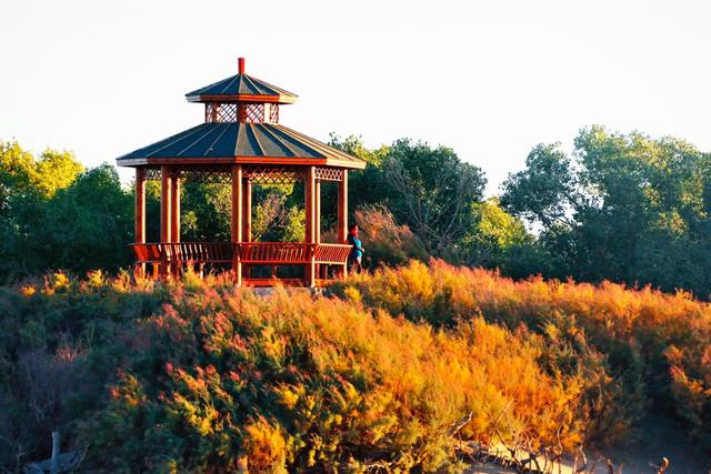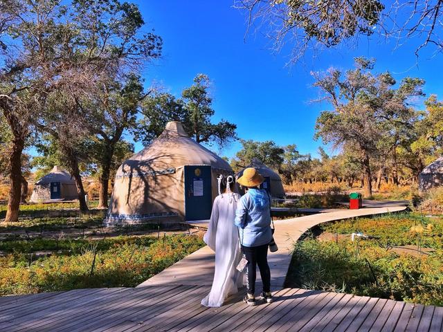 人像建议穿红色,白色,蓝色的衣服,这样可以与金色胡杨形成靓丽的视觉反差。