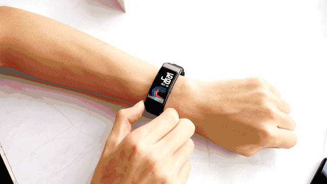 相比上一代,华为手环 B6 采用了 1.53 英寸的弧面柔性彩屏,显示面积比上代提升了 50%,PPI 达到 326 的级别显示效果细腻,而且亮度还能针对时间进行自适应调节。
