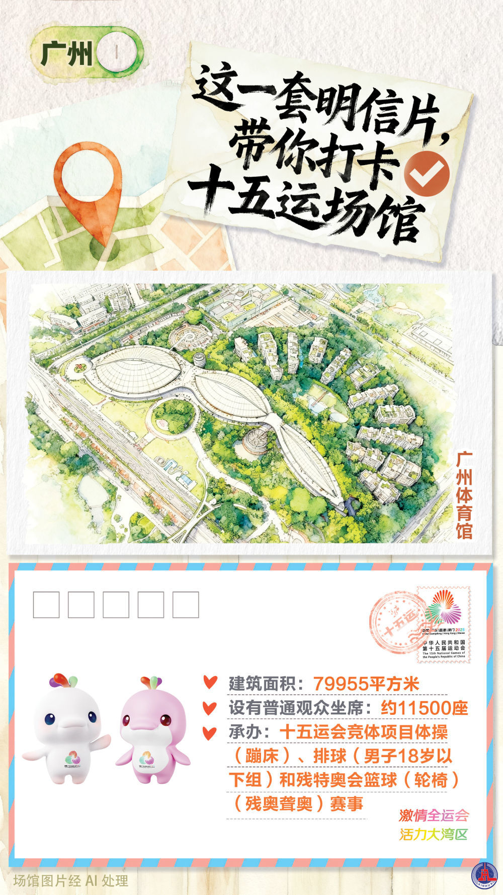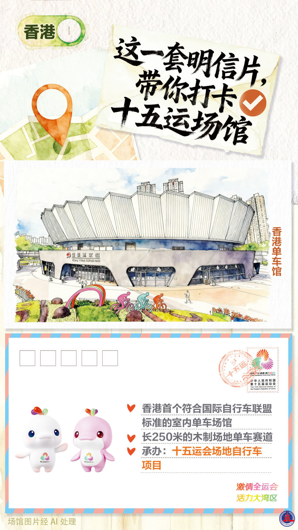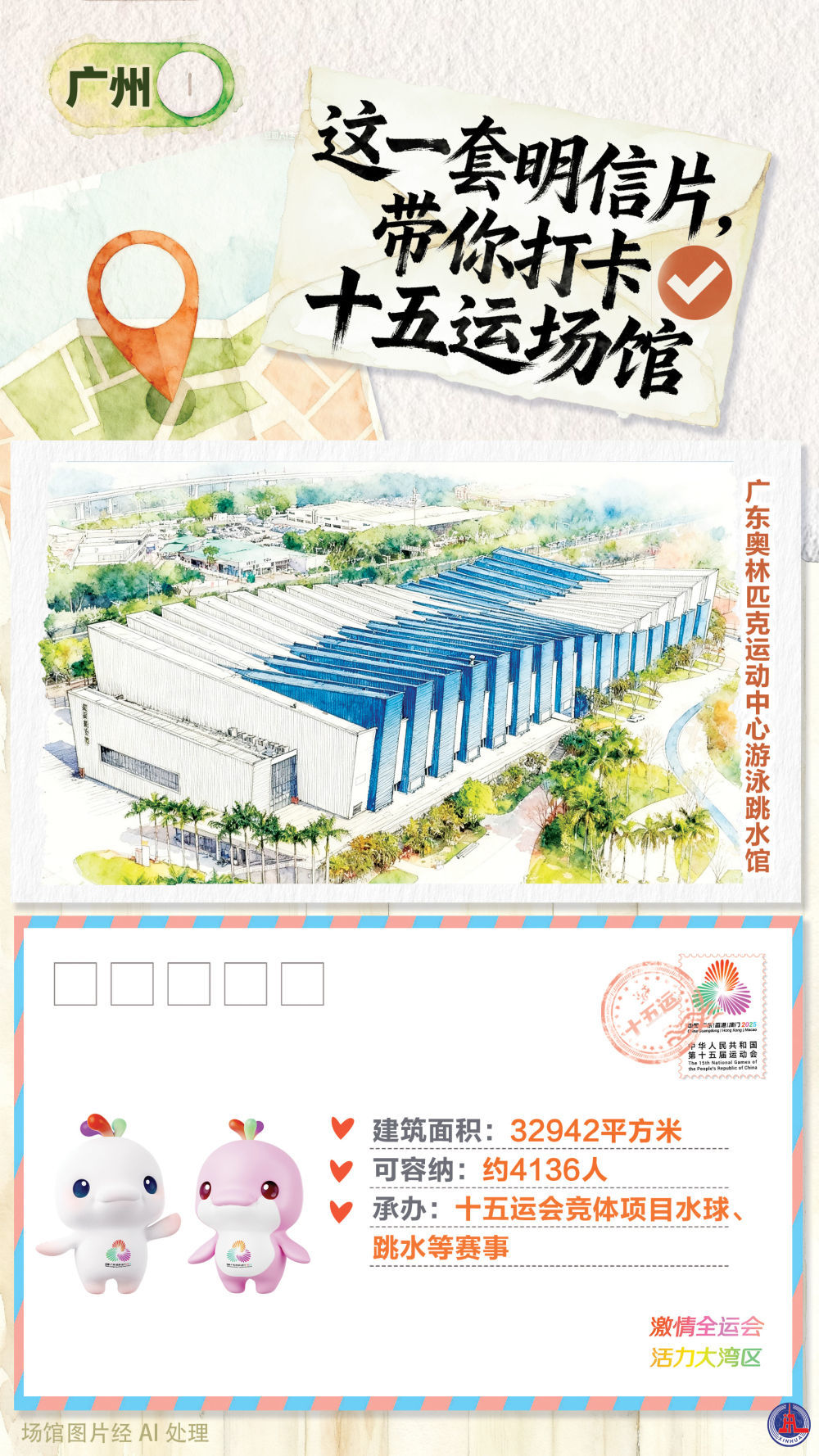 让我们换种方式与盛会对话——邀你以“明信片打卡”开启场馆巡礼。透过这些明信片的画面,既能提前感受赛场的激情张力,也能触摸粤港澳三地交融的独特魅力。期待与你一同,以明信片为媒,收藏属于本届全运会的独家记忆。