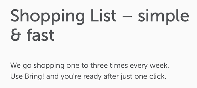 2015 年,「Bring!」在苏黎世成立,旨在为欧洲数百万的家庭,带来轻松又有趣的购物体验。值得一提的是,该应用程序不仅仅为用户显示可以购买的产品,还可以支持用户共享购物清单,获取食谱合集,并能查找本地优惠,获得会员卡。