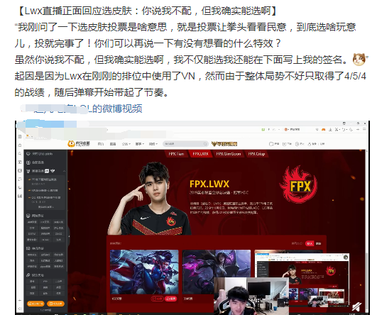 最近凤凰夺冠之后的冠军皮肤选择成为了大家热门讨论的内容,毕竟冠军皮肤是可以成为冠军的一个标志和荣耀,他们都要仔细选择,还在网上进行了投票,而其中选择皮肤最为谨慎的应该就是lwx了。