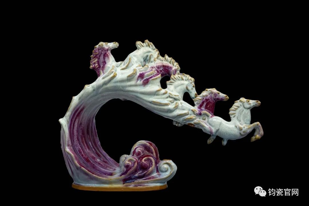作品《飞龙》做工细致、造型优美、比例协调,生动展示了一条鱼在历经磨难升华为龙的过程。作品底部的波涛象征了万千磨难,铜绿色结晶炉钧釉的装饰,让整个作品显得更加古朴、厚重。该作品既是对创业、求学者的一种激励,也是成功者的褒扬和赞颂。