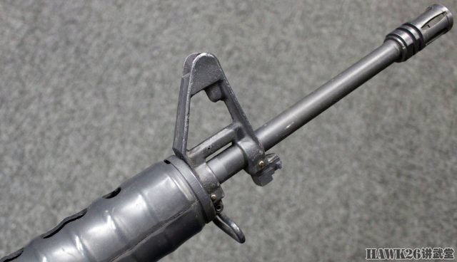 A2型护木上下分开,顶部和底部都有散热孔。表面的防滑纹路非常特别,在M16众多仿制型中独树一帜。枪身涂层色泽有差异,可能是生产工艺造成的。