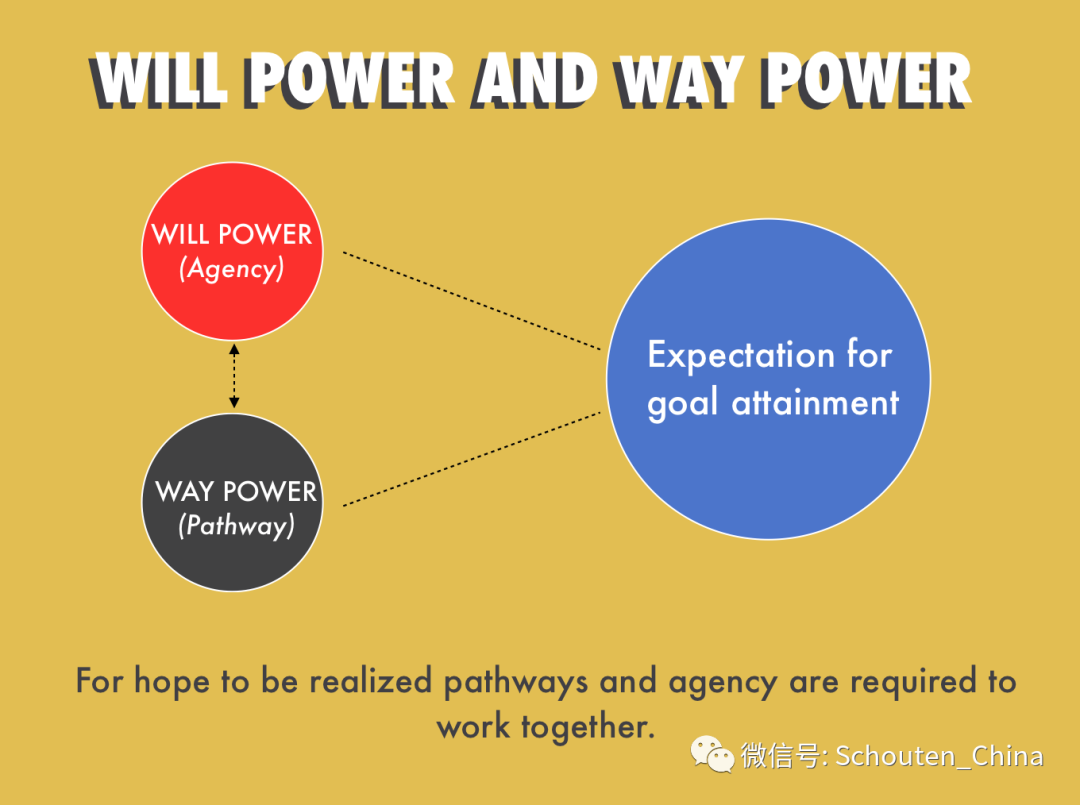 希望理论认为,我们需要不同的途径,去实现同一个目标,并且抱有坚持的意愿。该理论还强调了路径和动力思维之间的循环关系:路径思维导致更多的路径,反过来又导致动力思维和积极情绪 [28]。