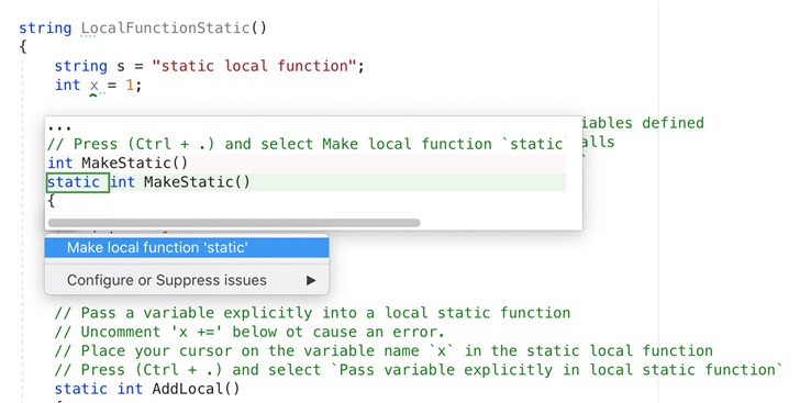 除了添加 BLazor 支持之外,此版本在代码修复或分析建议中可能发生的任何代码更改显示预览框。