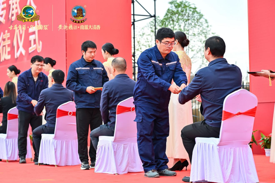 相比首届秋酿大典,第二届黄鹤楼酒·南派大清香秋季开酿大典增加了一个特别的环节:黄鹤楼酒·南派大清香酿造技艺传承人收徒仪式。薪火相传一脉承,前师后徒永流传。在庄严的氛围中,黄鹤楼酒·南派大清香酿造技艺再次迎来新的传承人,新一辈的黄鹤楼人必将秉承前人经验,继续将黄鹤楼酒·南派大清香酿造技艺发扬光大。