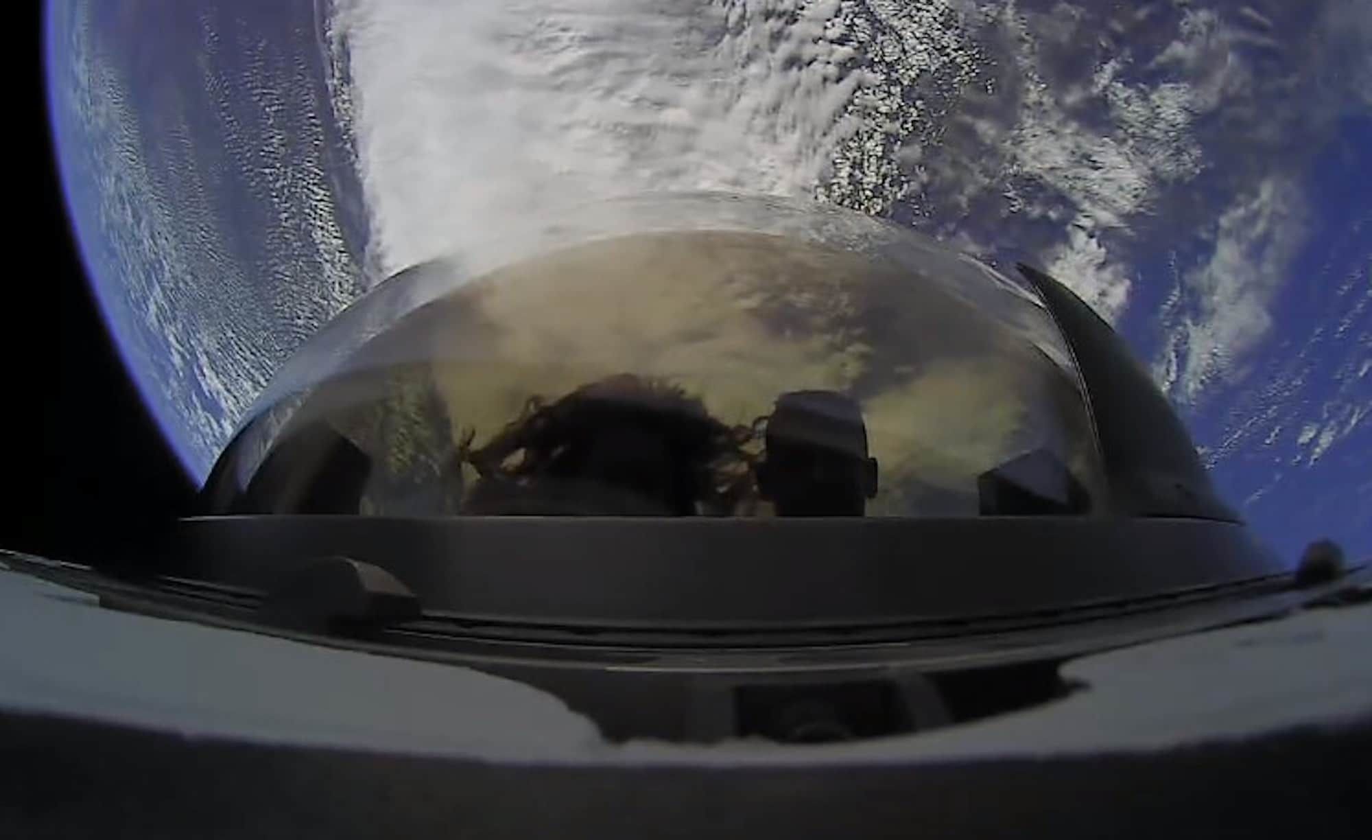 载人龙飞船单体穹形玻璃观察窗太空实拍(图源:SpaceX)