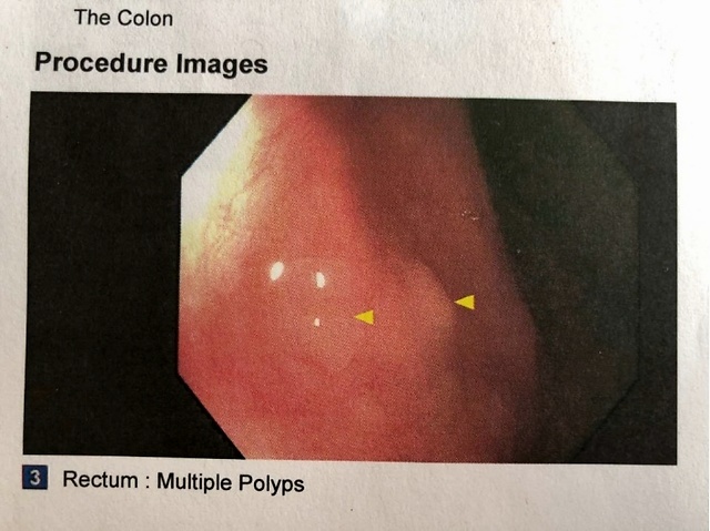 我是2009年做的第一次结直肠镜,一切正常,10年后的2019年4月又做了第二次(上图)。这次发现了两个小息肉(下图),当场用结直肠镜上的手术刀割除,化验结果没有发现癌细胞,所以下一次再做又定在了10年后。之所以间隔10年是因为从息肉到长成肿瘤一般要20年的时间。定期筛查和割除息肉就是把结直肠癌的隐患消灭在萌芽之中。