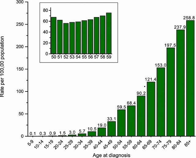年龄越大,风险越大,预计50岁以下的人群占结直肠癌新发病的12%,50-64岁占34%,≥65岁占54%。