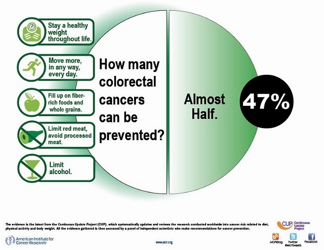 只要吃的健康,经常运动,保持合理的体重,47%的结直肠癌是可以避免的!