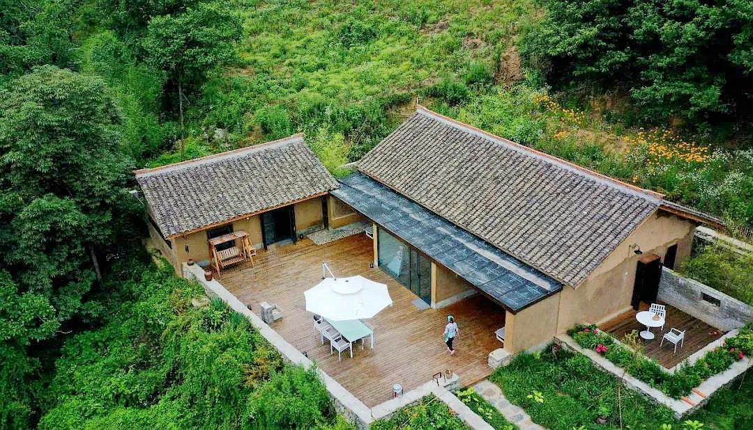 楼房沟是留坝县小留坝村的一个村民小组,这里植被茂盛,溪水潺潺,民风朴素。2019年,北京一家名为“隐居乡里”的民宿品牌看中了点缀在村子的黄茆屋、青瓦片和夯土墙。他们与村里合作,将这里腾退出来的老屋进行原生态改造,形成了集现代化设计与陕南民居特色于一体的民宿。