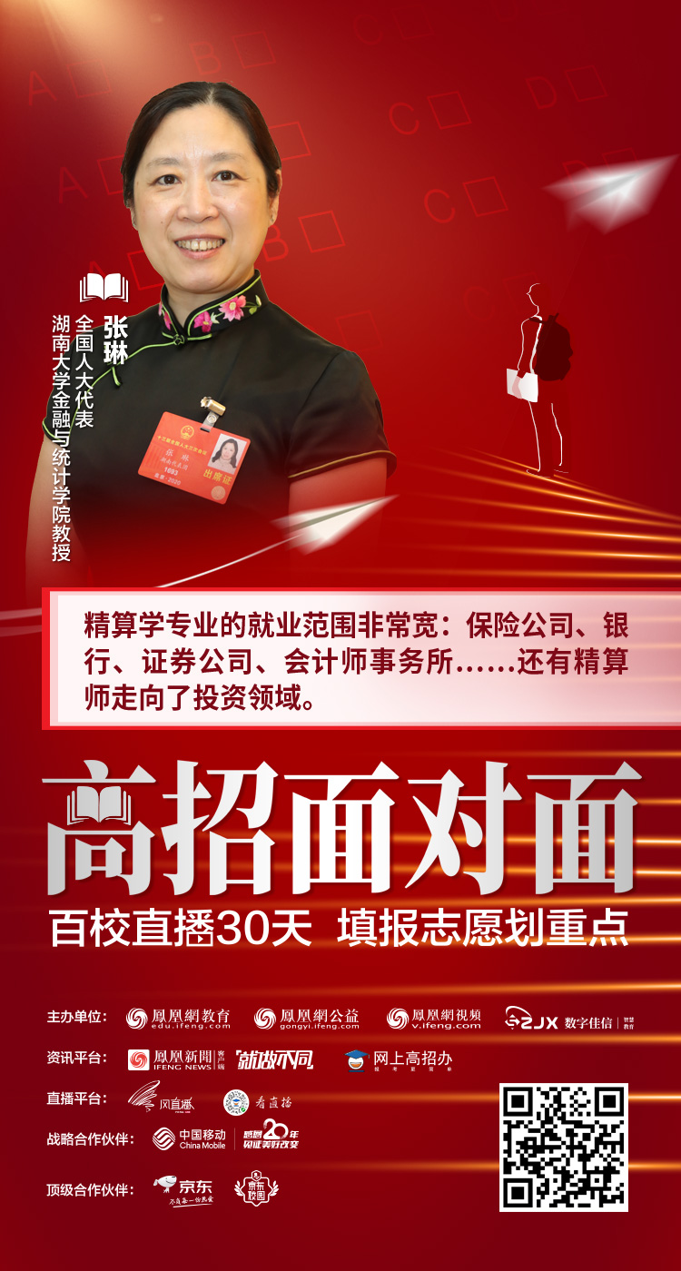 为培养更多顺应时代发展需求的复合型人才,今年学校新增多个专业,面向高考招生。7月21日,湖南大学金融与统计学院的教授张琳做客“高招面对面”2020年全国百所名校高招直播宣讲会直播间,为考生和家长详细介绍了湖南大学的招生政策和人才培养情况,并对与国际接轨、拥有国际竞争力的精算专业做了重点介绍(直播回看)。