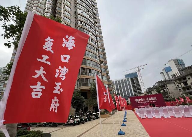 当天上午9时许,海口湾玉府项目业主以传统击鼓舞狮的庆祝方式,拉开小区复工的序幕。小区业主及贷款银行、施工单位等负责人出席了这场简单的复工仪式。