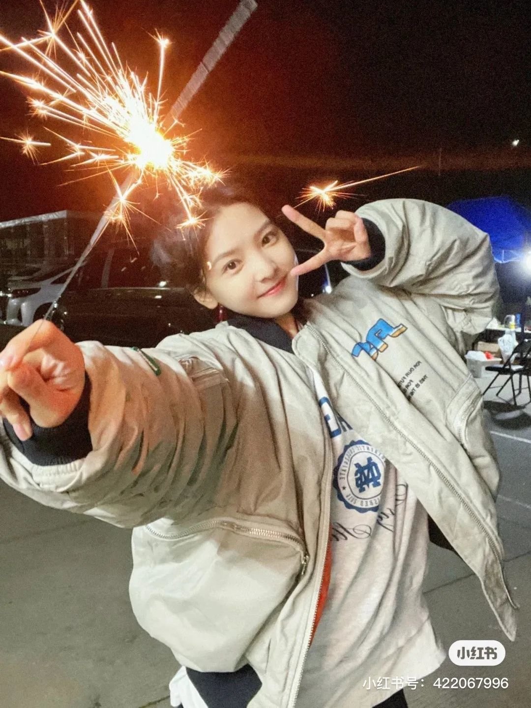 甜妹代表赵露思申请出战,羽绒服穿搭一看就很日常。容易犯镜头尴尬症的朋友可以考虑侧身拍照,视线望向烟花燃烧的方向,表情自然流露,剩下的就交给你朋友随意抓拍吧,无论哪种pose都很有邻家妹妹的感觉。设想一下如果是身高差下的男友视角,一定巨乖巧。