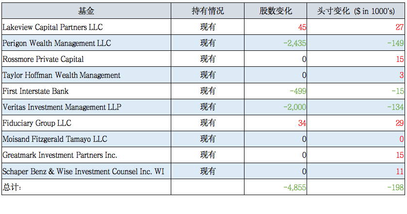 根据上述表格所示,从2019年3月31日到2019年6月30日,对于高露洁 (CL),在表格所列示的基金中有2个增持,3个减持。